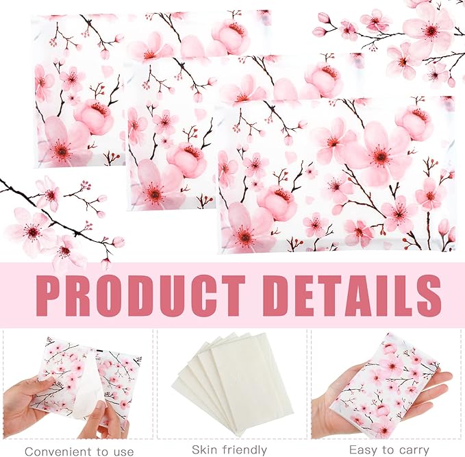 - Sakura Pattern: these pocket tissues travel packs are printed with beautiful sakura, suitable for daily use, and you can use them to serve your guests at parties and weddings