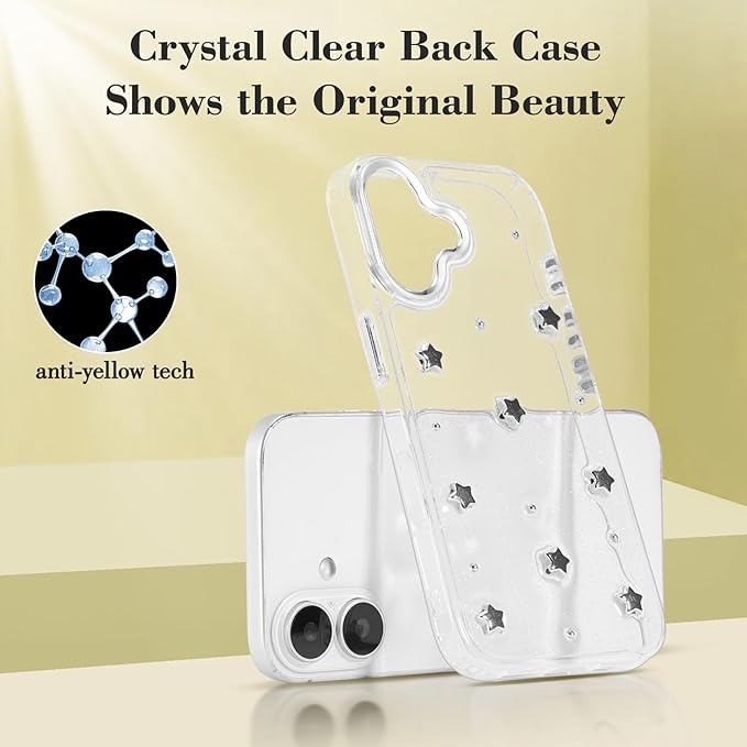 - Cute Fashionable Star Design: Handmade 3D stereoscopic star design, dotted with silver beads, the back of this case is a sparkling transparent design, which not only shows the original appearance of the phone well, but also gives your phone a more stylish, lovely and exquisite kawaii appearance, adding unique charm to your phone. Using the glue drop sealing technology, the star beads will not drop