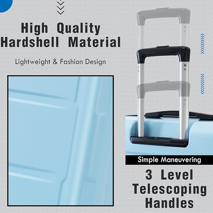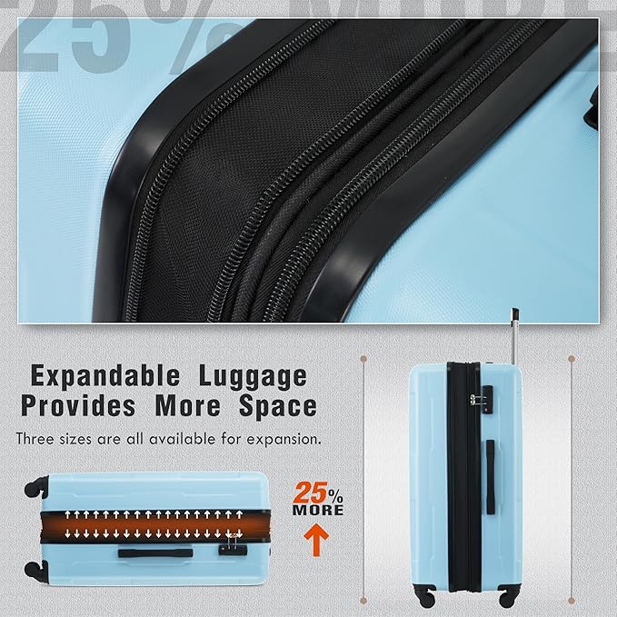 Merax Luggage Set 2 Piece Suitcase Sets with Spinner Wheel,Lightweight Hardside Expandable Travel Laggage with TSA Lock,Suitcase with Travel Bag(20"/28",Baby Blue)