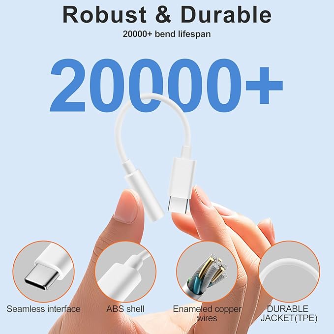 - 【Wide Compatibility】: Wider compatibility than others type c to 3.5mm adapters, compatible with most of the type c phones: iPhone 16/iPhone 15/15 Pro/15 Plus/15 Pro Max,Samsung Galaxy S24/S23/S22/S21 S21+ S21 Ultra S20 Ultra S20 Z Flip S20+, S10 S9 S8 Plus, Note 20 ultra 10 10+ 9 8, iPad pro, Mac book, Google pixel 4 3 2 XL, Huawei P40 Pro, P30 Pro, P20 Pro, Mate 20 Pro, Mate 30 Pro, Mate 40 Pro, One plus 6T 7 7Pro and more.