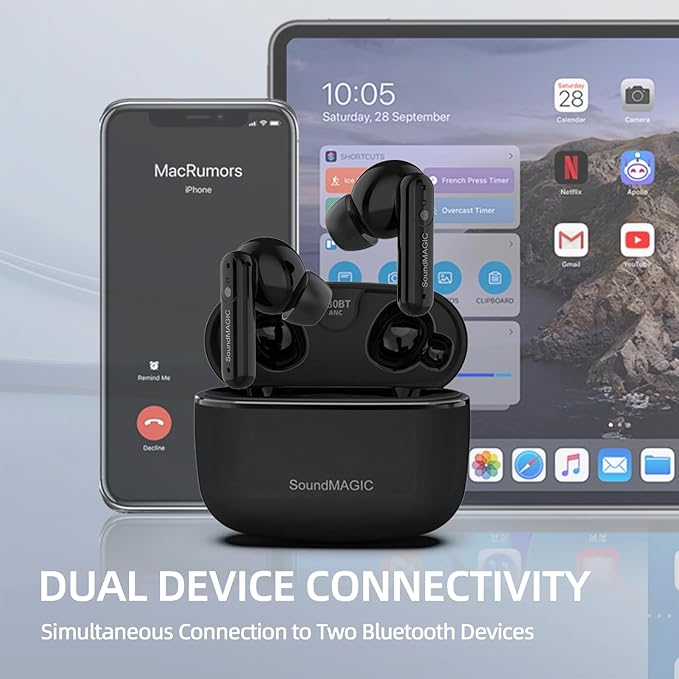 - 【Dual-Device Pairing & Gaming Mode】 Connect to two devices simultaneously—seamlessly switch between work and play. Low-Latency Gaming Mode for immersive, lag-free audio in games.
