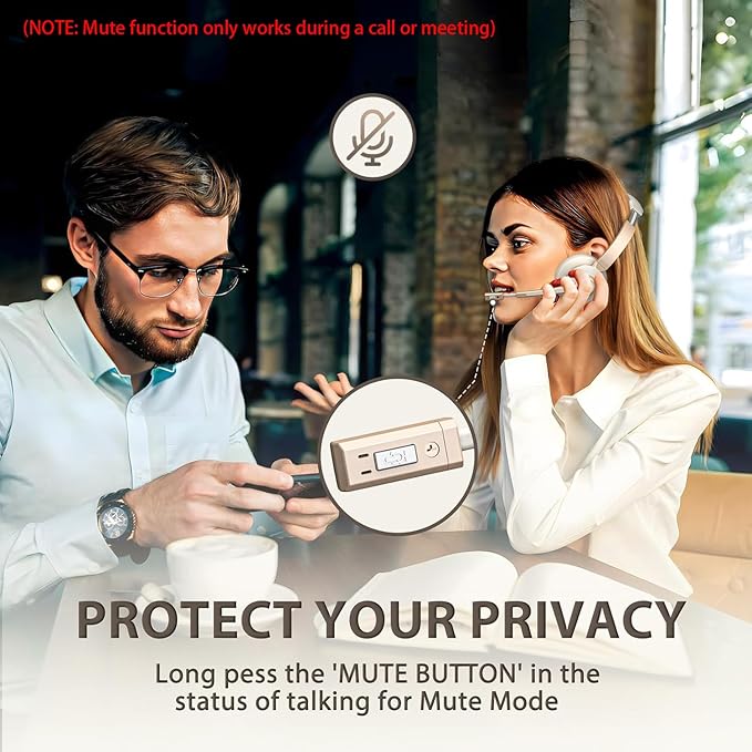 - 【AI Noise Cancellation & Mute Mode】Our wireless headset with mic utilizes advanced ENC technology to effectively cancel up to 99% of ambient noise. Your voice will be heard loud and clear in all your calls, no matter how noisy your surroundings It is the perfect choice for remote workers. With the mute button, you can mute your voice freely at any time on a call, protecting your privacy (Mute only works during a call or meeting)