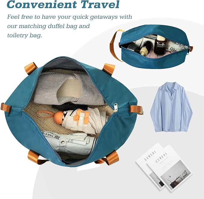 - Luggage set includes a 28-inch suitcase, a travel duffel bag, and a toiletry bag. The duffel bag has trolley sleeve with zippered pocket to pack your travel essentials, you can conveniently attach them to the adjustable suitcase handle to meet your needs.