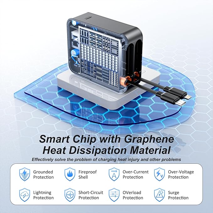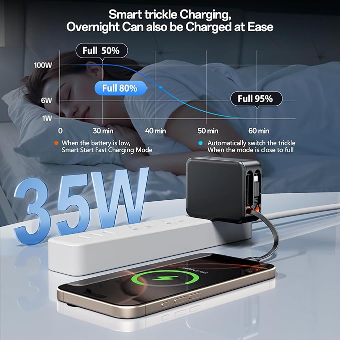 - [Travel] Our innovative charger comes with two retractable charging cables that extend up to 32 inches and automatically retract for easy, tangle-free storage at home, in the office, or while traveling. When you're on the move, just fold the plug, retract the cables, and slip the charger into your bag or pocket—keeping your phones and tablets safe from annoying scratches.