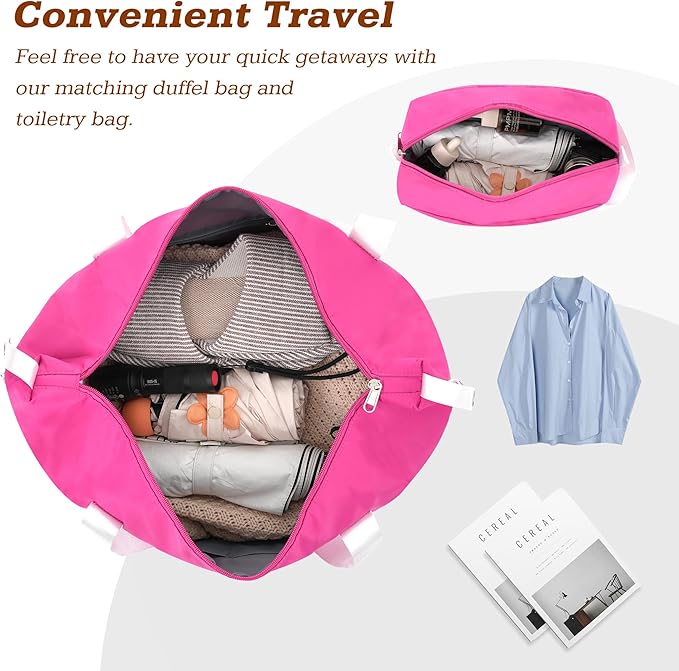 - Luggage set includes a 24-inch suitcase, a travel duffel bag, and a toiletry bag. The duffel bag has trolley sleeve with zippered pocket to pack your travel essentials, you can conveniently attach them to the adjustable suitcase handle to meet your needs.
