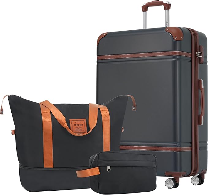 Merax Suitcase Set 24 inches Expandable Luggage with TSA Lock Spinner Wheels Hardshell Lightweight Vintage Luggage with Travel Bag,Black
