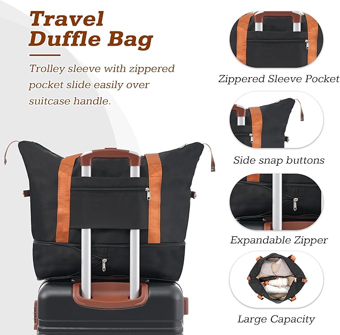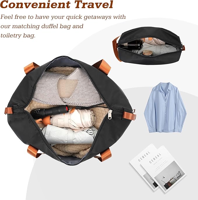 - Luggage set includes a 24-inch suitcase, a travel duffel bag, and a toiletry bag. The duffel bag has trolley sleeve with zippered pocket to pack your travel essentials, you can conveniently attach them to the adjustable suitcase handle to meet your needs.