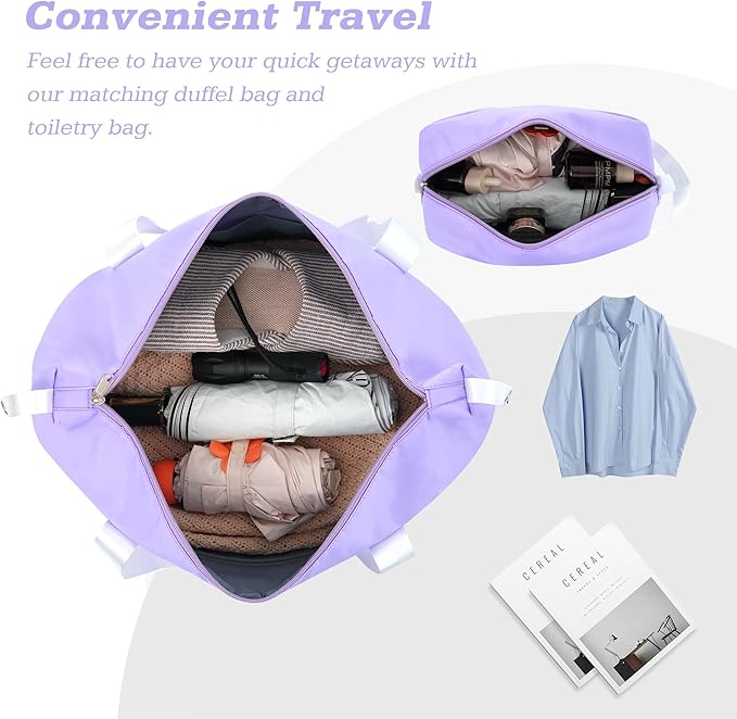 - Luggage set includes a 28-inch suitcase, a travel duffel bag, and a toiletry bag. The duffel bag has trolley sleeve with zippered pocket to pack your travel essentials, you can conveniently attach them to the adjustable suitcase handle to meet your needs.