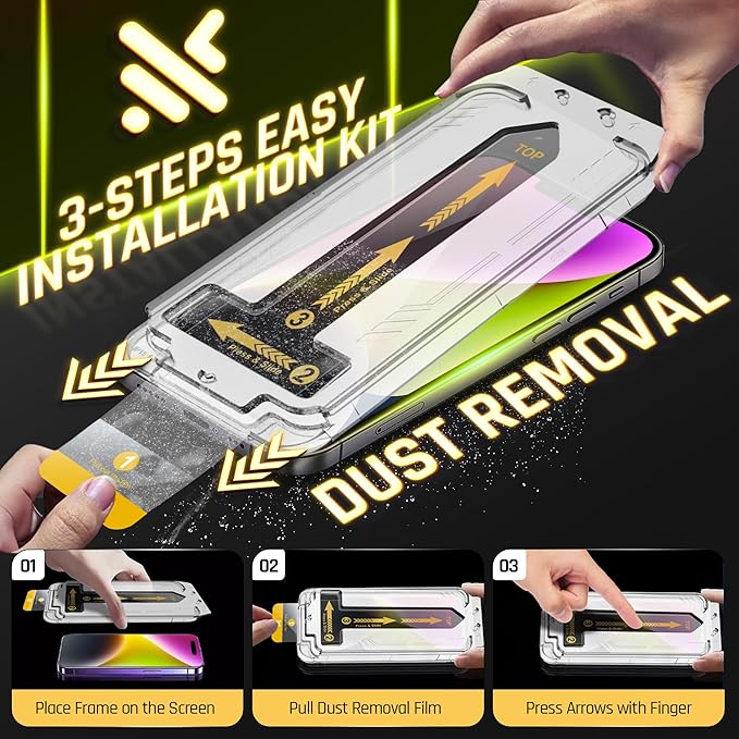 - EASY, BUBBLE-FREE INSTALLATION: The all-in-one iPhone screen protector iPhone 13 Pro Max/14 Plus installation kit makes applying the tempered glass iPhone 13 Pro Max/14 Plus screen protector a breeze. Say goodbye to air bubbles or misalignment—our phone screen protector iPhone 13 Pro Max/14 Plus tempered glass ensures a great fit every time for effortless, easy installation.