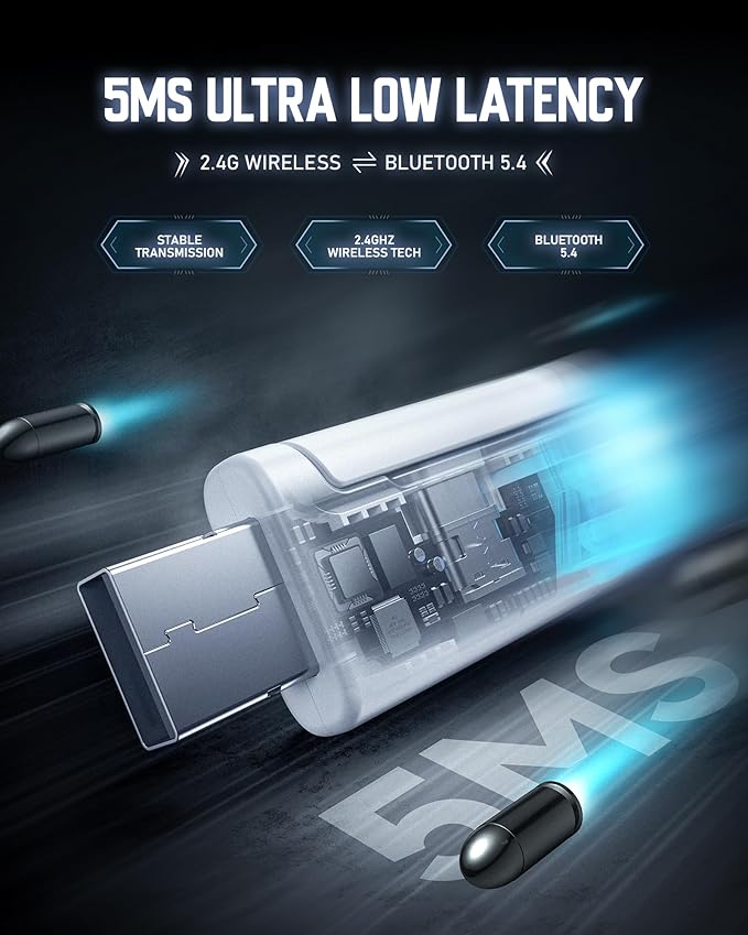 - 🎙️【Retractable ENC Noise-Canceling Microphone & One-touch Mute】Equipped with a 360° omnidirectional Noise-Canceling microphone. Our wireless headset can accurately calculate the speaker's direction, preserving the target voice while eliminating background noise for improved call quality. Gaming headsets with mic ensure your voice are relayed in high-definition clarity to your teammates, even in the heat of battle. Meanwhile, the retractable microphone combines the advantages of various types of microphones: ultra-low latency, high sound reproduction, concealability, and portability, the perfect gift for gamers and music enthusiasts.