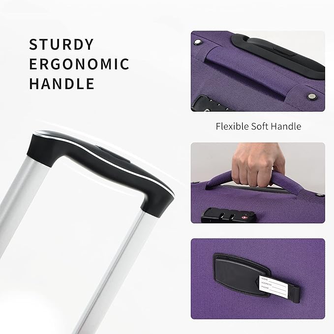 Merax Softside Luggage Set Softshell Lightweight 3 Piece Spinner Suitcase with Duffel Bag Expandable Upright Travel Luggage 22" 26" 30",Purple