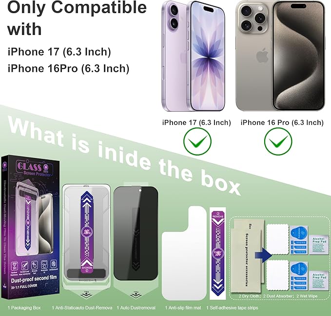 - Screen Protector Compatible:Designed specifically for iphone 17/16 pro, our screen protector guarantees 100% touch accuracy. Please note, it is not compatible with other iPhone models