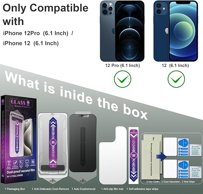 - Automattc Dust Removal Technology:Say goodbye to installation hassles with our iphone 12 screen protector! Simply close and pull to automatically align and remove dust—no more worries about air bubbles or dirt. Watch our installation video for easy steps and tips for the second pack. Perfect for those using a privacy screen iphone 12 pro