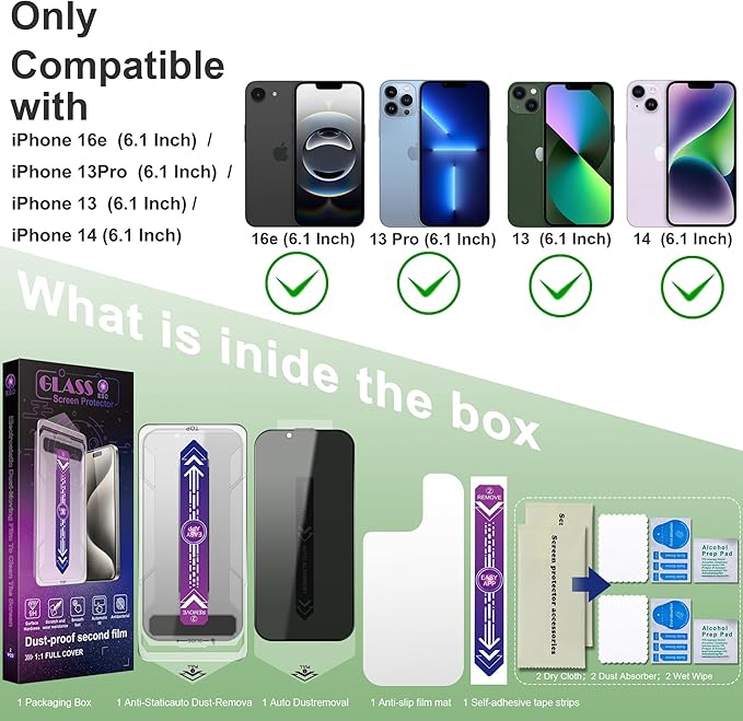 - Screen Protector Compatible:Designed specifically for iphone 16e and iphone 13 pro and iphone 13 and iphone 14, our screen protector guarantees 100% touch accuracy. Please note, it is not compatible with other iPhone models