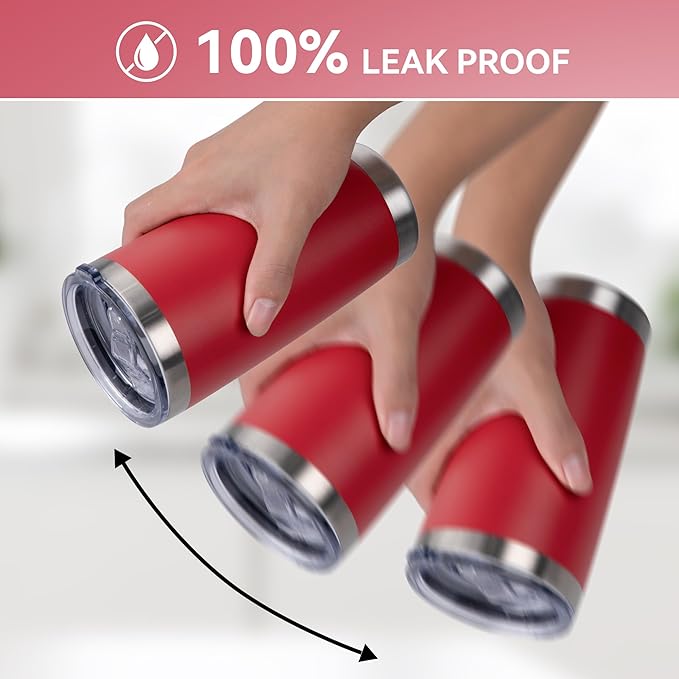- 18/8 Stainless Steel Tumblers: Our tumbler cups are made of food-grade stainless steel, which makes them rust-resistant and unbreakable for heavy use all year round. The press-on lid is made of BPA-free plastic, which is safe and prevents leaks. These non-toxic tumblers provide a healthy drinking experience.