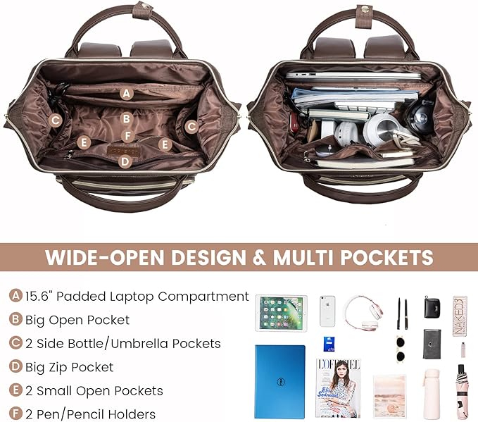 - 🎒【Professional Wide Open Work Bags College Backpack】: Reinforced edges and steel frame of the main compartment keep the perfect shape of the bag and durable of usage. Plenty of space for everything to help stay organized and access quickly. Professional and well made for work, business, travel, commuting, college, teacher, nurse, daily use as a practical gift for women.