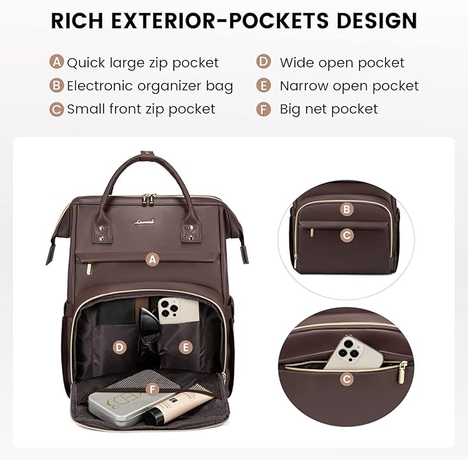 LOVEVOOK Leather Laptop Backpack for Women 15.6 inch,Travel Backpack Purse Nurse Teacher Backpack Computer Laptop Bag,Professional College Business Work Bags Carry On Backpack with USB Port,Coffee