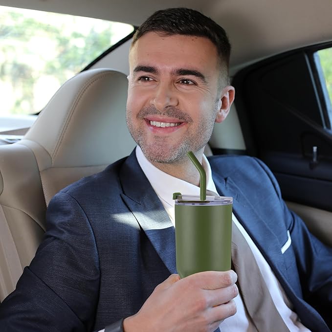 VEGOND 30 oz Insulated Stainless Steel Tumblers with lid and straw Bulk Pack Coffee Mug with Non-Slip Silicone Base, Sweat Proof Powder Coated Cup for Hot Cold Drinks, Army Green 4Pack