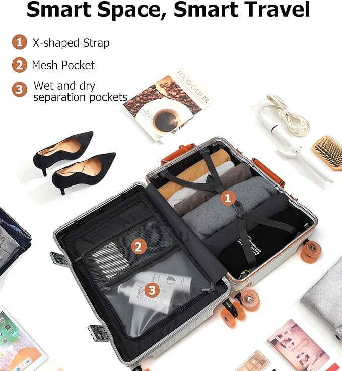 - Wide Telescopic Handle Airline Approved: The stylish wide telescopic handle enhances the suitcase’s premium appearance, this design offers up to 98% more usable space than standard suitcases, providing ample room for all your travel essentials while offers convenience and practicality for efficient packing.