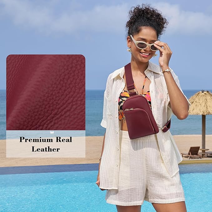 INICAT RFID Blocking Sling Bag Leather Crossbody Bags for Women Fanny Pack Cross Body for Woman Chest Bag for Travel 1.9L