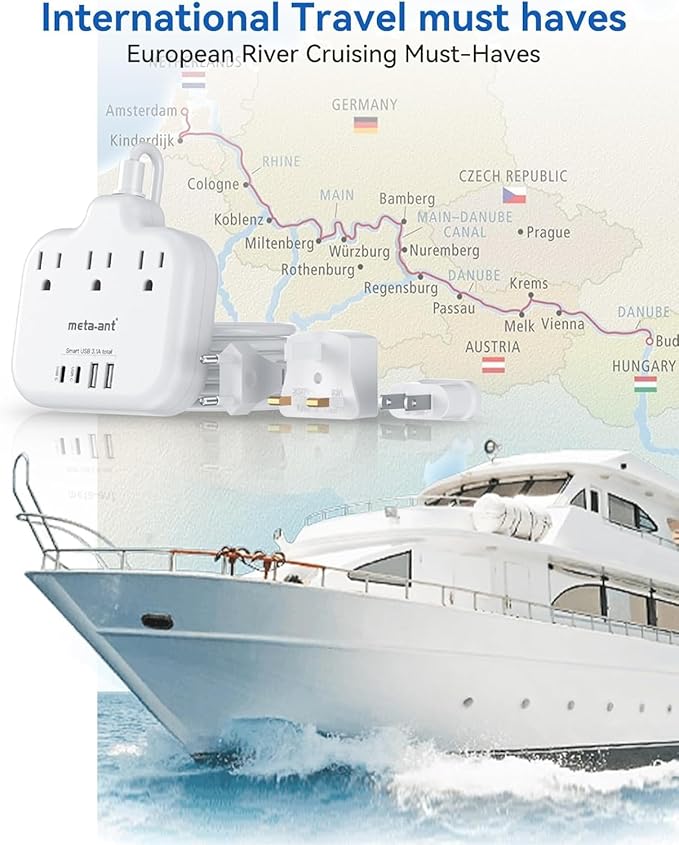 - 【7 in 1 UK power adapter】meta-ant UK plug adapter can turn 1 UK Type G outlets into 3 outlets and 4 USB(2 USB-C) ports, charge up to 7 devices at a time. Ideal for traveler, business man and foreign student use in airports, hotels and dorm room