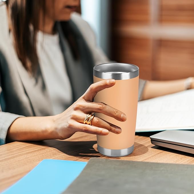 20 oz Tumbler Stainless Steel Tumblers Bulk with Lid Double Wall Insulated Coffee Tumbler Cups for Hot & Cold Drinks Powder Coated Travel Coffee Tumbler Mug Metal (Cream Orange, 12 pack)