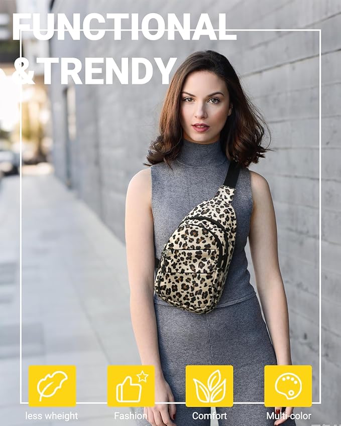 Crossbody Bags for Women, Sling Bag for Men, Small Hiking Backpack Anti Theft Lightweight for Outdoors Travel (M, Leopard)