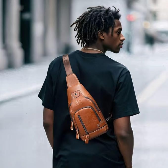 Sling Bag for Men Genuine Leather Chest Bag Crossbody Backpack Travel Hiking Outdoor Sports