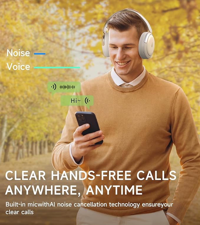 - 【Immersive -44dB Noise Cancellation】Featuring advanced hybrid active noise cancellation and an upgraded over-ear design, this headset delivers up to -44dB noise reduction. Enjoy your music with exceptional clarity, free from distractions, no matter where you are.