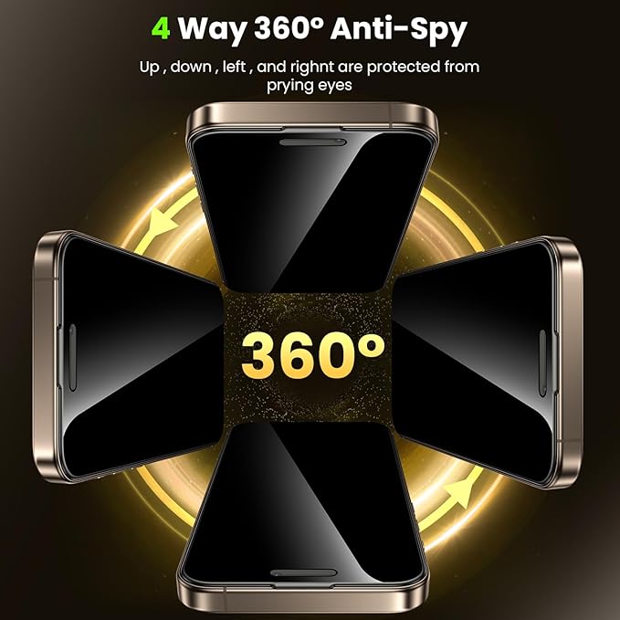 - 4 Way 360 Degree Privacy Protection: WSKEN new upgraded horizontal and vertical 4 directions all-round privacy protection tempered glass screen protectors make your iphone 16 pro screen be invisible to left and right, up and down. It blocks any prying in public places,and ensure that only you can clearly see.
