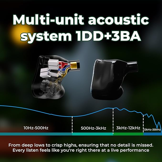- 3D-Printed Acoustic Structure + RLC Network:Y-Shaped Sound Tube eliminates resonance for tighter bass and smoother mids. RLC Frequency Division Tech ensures seamless driver coordination—zero frequency overlap.