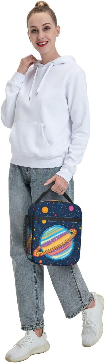 Colorful Planet Lunch Box for Kids,Women,Men,Galaxy Space Design Insulated Lunchbox,Leakproof Tote Bag,Reusable Cooler Bags for Work,Picnic,Office,Travel,Cartoon Style Lunchbag Gifts