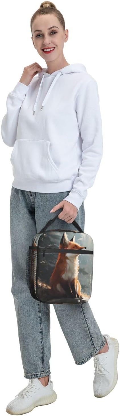 Fox Lunch Box Insulated Lunch Bag for kids Girls Boys Women,Reusable Lunch Box Containers for Women Men,Durable Cooler Tote Bag Lunchbox for Office/School/Picnic