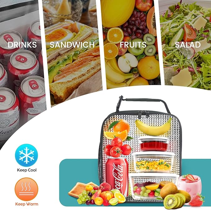 - 【Great insulation】 With a pearl cotton insulation layer and an aluminum film interior lining, lunch bags provide excellent insulation capabilities for both keeping your food warm and maintaining its coolness.