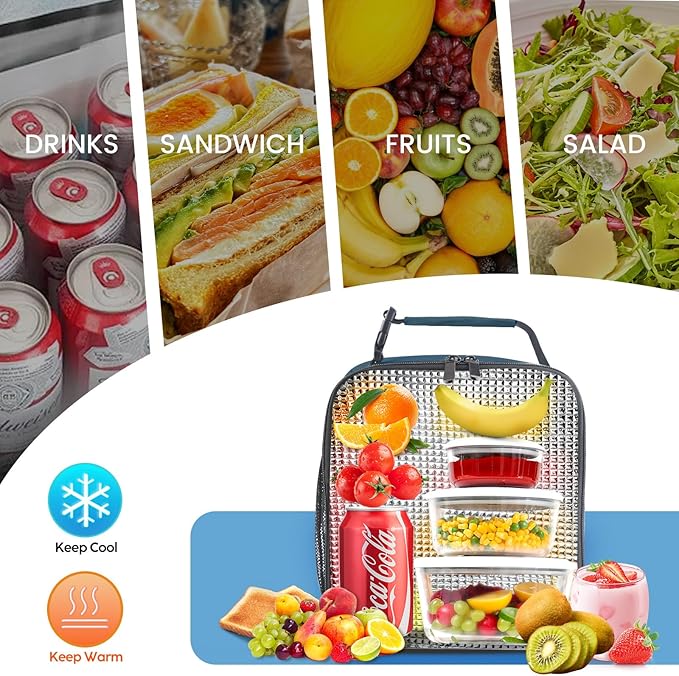 - 【Great insulation】 With a pearl cotton insulation layer and an aluminum film interior lining, lunch bags provide excellent insulation capabilities for both keeping your food warm and maintaining its coolness.