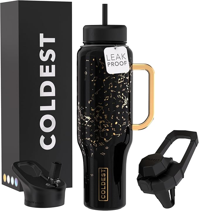 - 100% Leak-Proof, Guaranteed: No more worrying about spills- Coldest water bottle with handle is engineered for a completely leak-resistant experience. With three versatile lids, including a straw option, you can confidently take your drink anywhere without a single drop escaping.