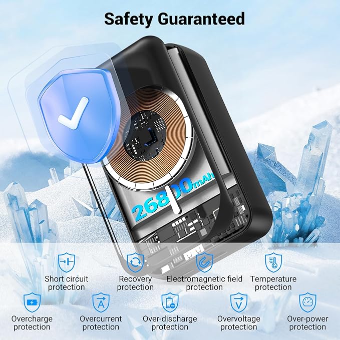 - 【26800mAh Large Capacity & Wireless Charging】YONHUIZI portable magnetic wireless power bank boasts an impressive 26800mAh battery capacity, the Portable Charger adopts the latest magnetic suction technology, for cell phones and cases with magnetic suction function can be instantly sucked and quickly charged.