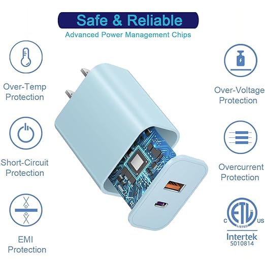 - 【Wide Compatibility】This iphone charging piug fast charging is suitable for a variety of mobile devices,including iPhone 16 / 16 Plus/ 16 Pro / 16 Pro Max /iPhone 15 / 15 Plus/ 15 Pro / 15 Pro Max / 14 / 14 Plus / 14 Pro /14 Pro Max/13/13 Pro Max/13 Mini/12/SE/11/XS/XS Max/XR/X/8, iPad, AirPods, Samsung Galaxy S22 / S21 / S20 / S10, Note 20 / 10, Google Pixel 8/7/ 7Pro / 6 / 5 / 4a / 4XL / 4 or other devices that support USB and USB-C Power Delivery.