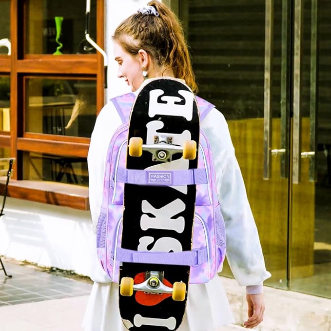 17 Inches Backpack for Girls Women, 3Pcs Tie-dye College School Bookbag Set for Teens Students, Water Resistant Laptop Backpacks with Lunch Bag(Purple)