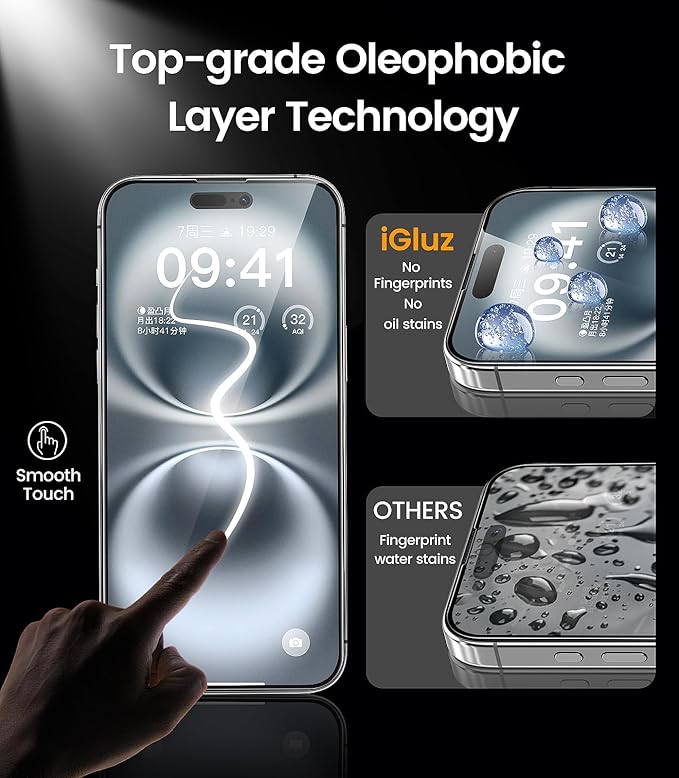 - 【iGluz's Ironclad Protection Promise】Every iPhone 16 screen protector comes with our 365-Day Worry-Free Warranty - if it cracks, peels or installs poorly, we'll send a free replacement immediately (no returns needed)! Enjoy 24/7 PandaCare support and aerospace-grade 9H hardness - because your protection is our mission.