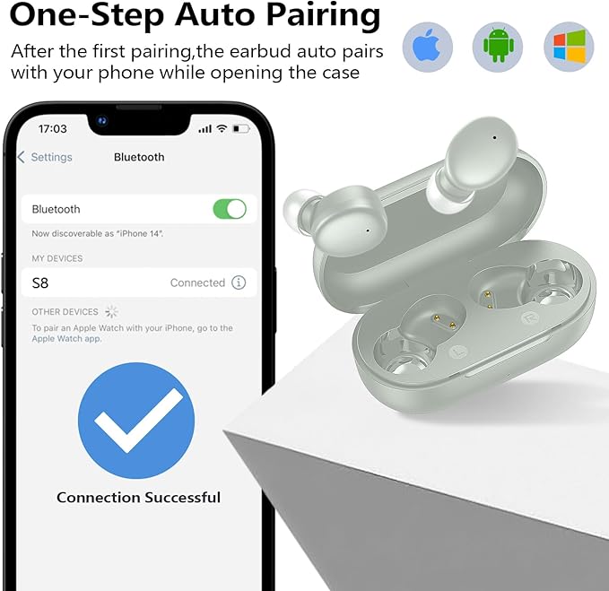- Bluetooth 5.3 for Fast Pairing: The wireless earbuds utilize the latest Bluetooth 5.3 technology for faster transmission speeds, simply open the lid of the charging case, and both earphones will automatically connect. They are widely compatible with iOS and Android