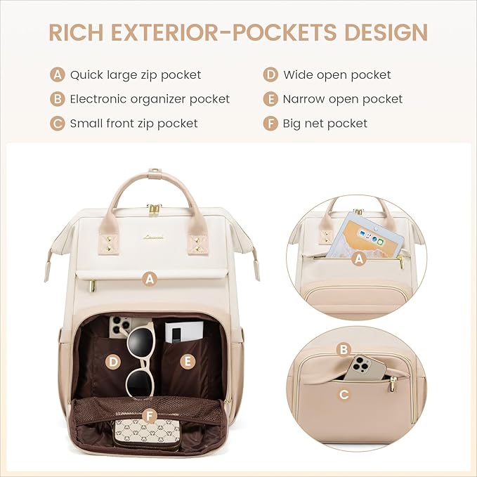 LOVEVOOK Leather Backpack for Women,18 inch Leather Laptop Backpack Women,Professional Work Backpack Nurse College Teacher Bag,Womens Laptop Tote Bag Computer Travel Backpack Purse,Beige-Flesh Beige