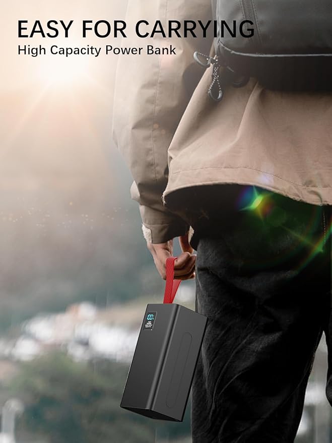 - This mobile phone battery pack has a soft lanyard on the top, which is convenient for you to hold in your hand or put in backpack, you can carry the mobile power in different usage scenarios. And it is equipped with an LED display, which can accurately display the percentage of remaining power, you can clearly know the remaining power and charge in time.