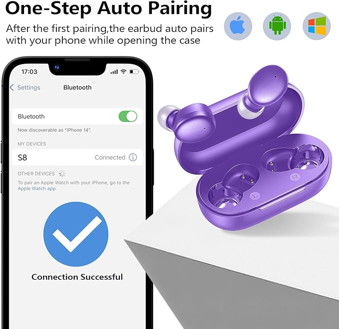 - Bluetooth 5.3 for Fast Pairing: The wireless earbuds utilize the latest Bluetooth 5.3 technology for faster transmission speeds, simply open the lid of the charging case, and both earphones will automatically connect. They are widely compatible with iOS and Android
