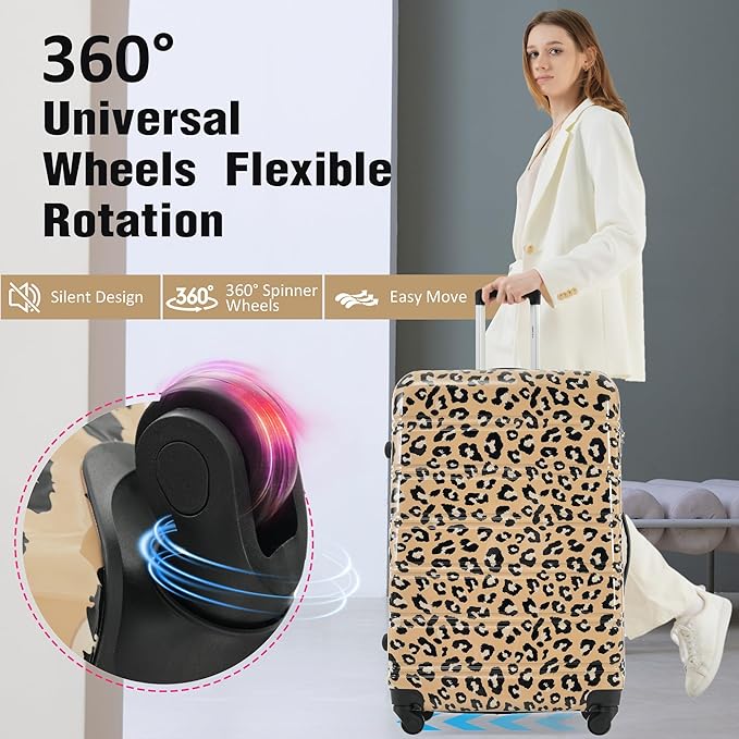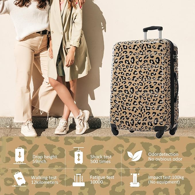 Merax Luggage Sets 3 Piece, Hardside Expandable Suitcase Set with Spinner Wheels, Lightweight Leopard Luggage 20+24+28 IN,Leopard Brown
