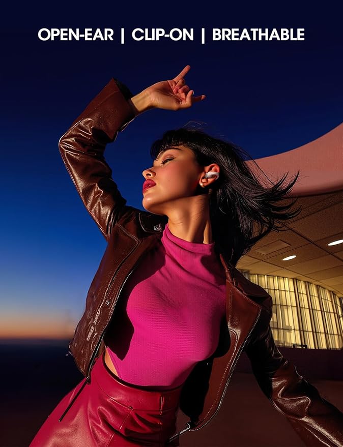 - Built for Quality & Comfort: Upgraded Open-Ear Clip-On Design, While immersed in listening, you can also perceive the changes in the surrounding environment in real time, safety with you. The soft TPE material on the outside of the ear clip of the clip on earbuds ensures a safe and non-irritating wear. Built-in adjustable memory titanium wire, to meet the needs of a variety of ear shape wear. Unique ergonomic fit design fits the contours of the ear more comfortably and stably, not easy to fall off (including S/M/L size ear caps)