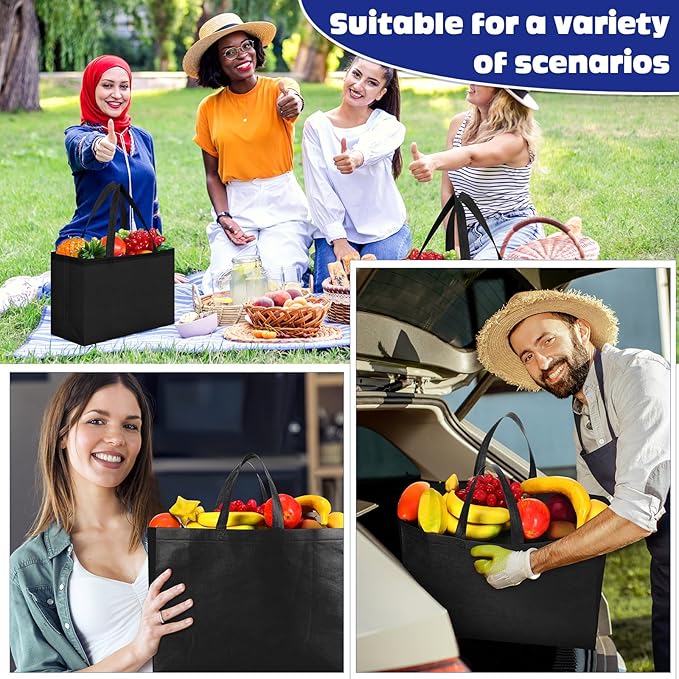 - Spacious and Versatile: with dimensions of x about 16x6x12 Inch/40.5*15*30.5cm, these reusable grocery bags offer ample space for whatever you need to carry, be it groceries, clothes, books, gardening supplies or crafts; Their solid design makes them suitable for both home and commercial usage, companies or events like weddings, birthdays or parties
