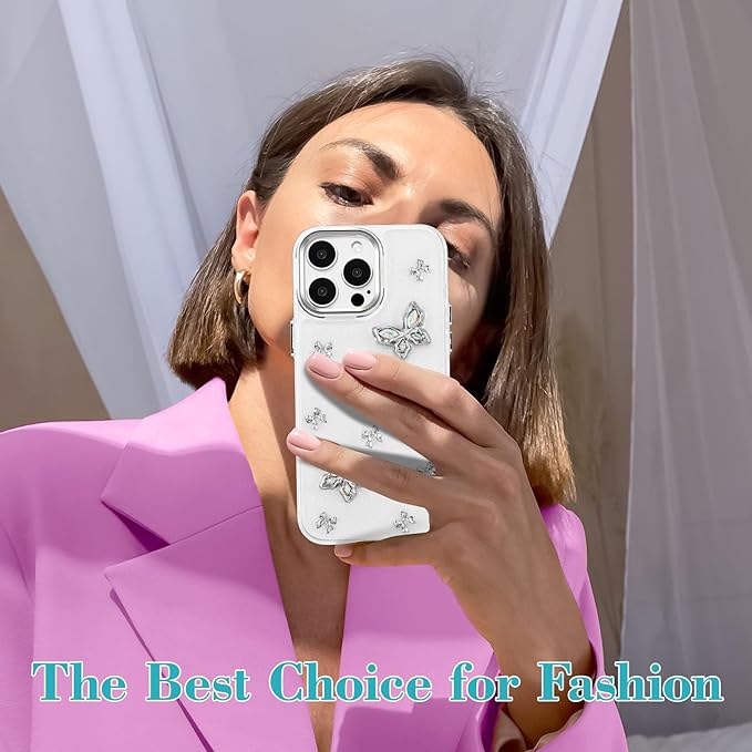 - Cute Fashionable Bow Design: Handmade 3D stereoscopic butterflies design, dotted with silver bows, the back of this case is sparkling transparent design, which not only shows the original appearance of the phone well, but also gives your phone a more stylish, lovely and exquisite kawaii appearance, adding unique charm to your phone. Using the glue drop sealing technology, the bows will not fall easily