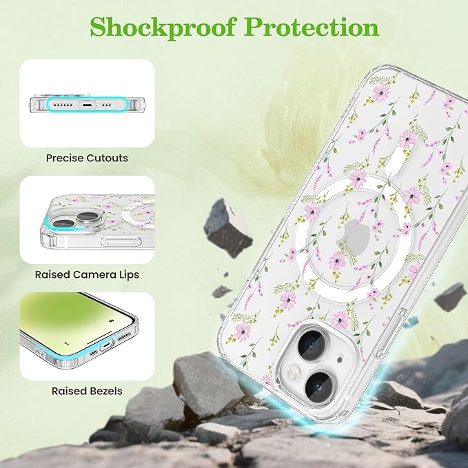 - Precise Cutouts: Each hole of this for iPhone 13/14 magnetic case floral aligns perfectly with phone buttons,ports,camera, etc. With such accuracy, it combines functionality and aesthetics, making it an ideal phone cover for your phone