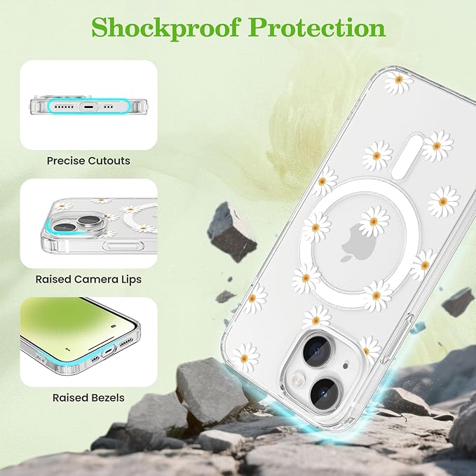 ZTOFERA for iPhone 13/14 Magnetic Case Compatible with Magsafe,Aesthetic Floral Pattern Design Cute for Girl Women,Anti-Drop Protective Hard Phone Cover for iPhone 13/14-Daisy